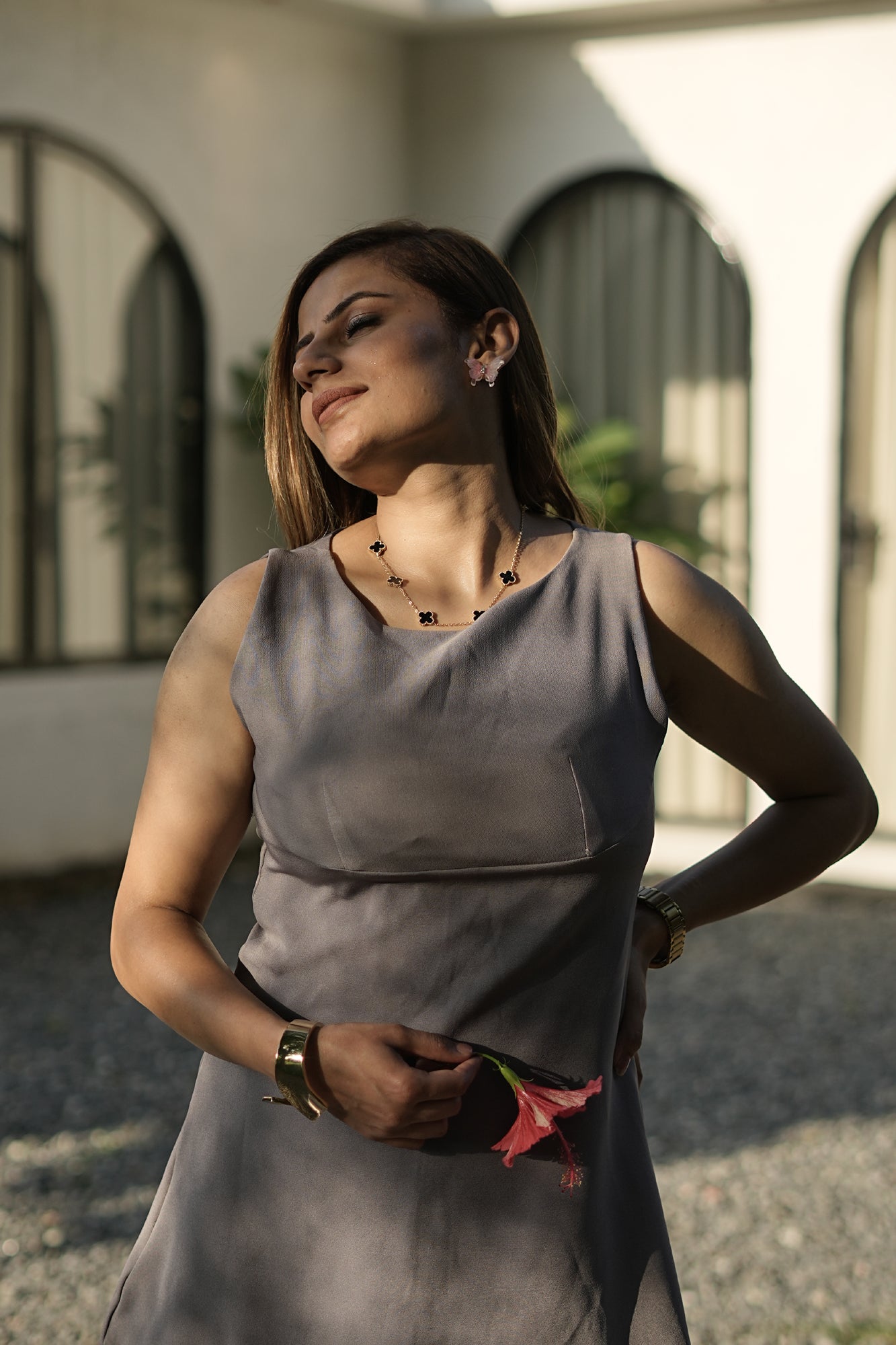 Grey Bloom Hem Dress - Stretchable Polyester Blend