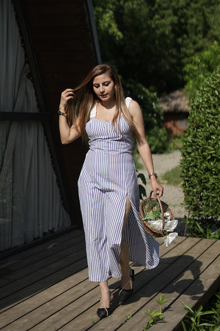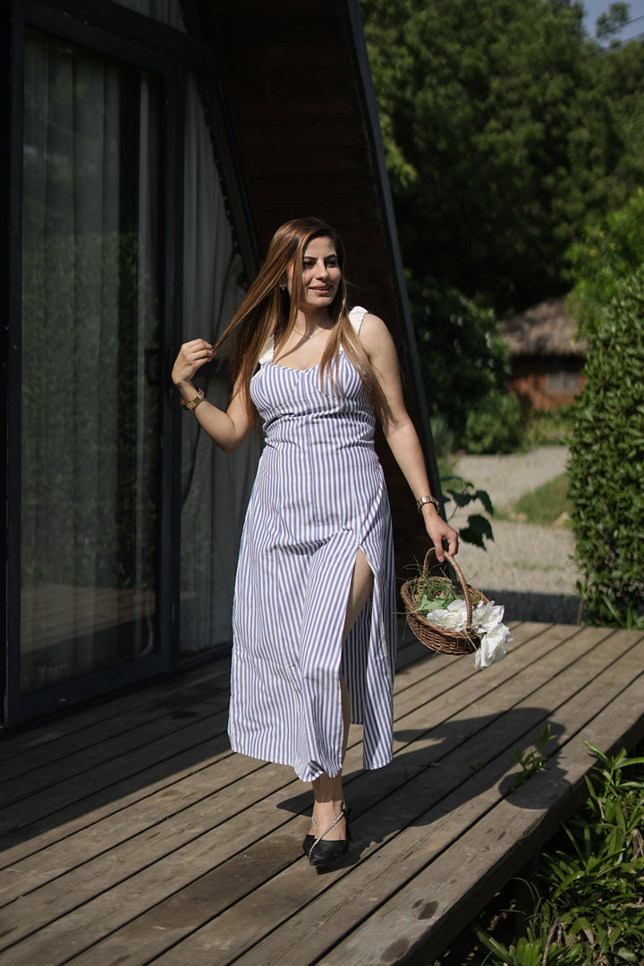 Striped Cotton Maxi Dress with Side Slit